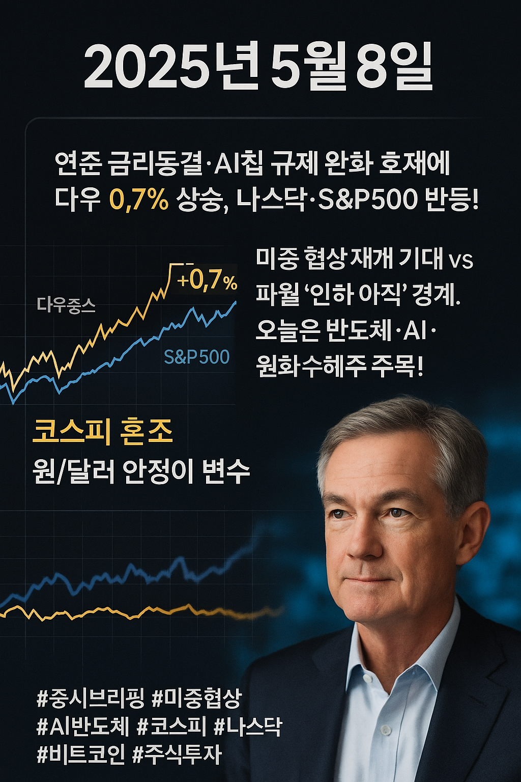 | 2025년 5월 8일, 9일 증시 브리핑: 금리 동결·무역합의 증시에 미칠 영향은? (7) | 2025.05.09 |
