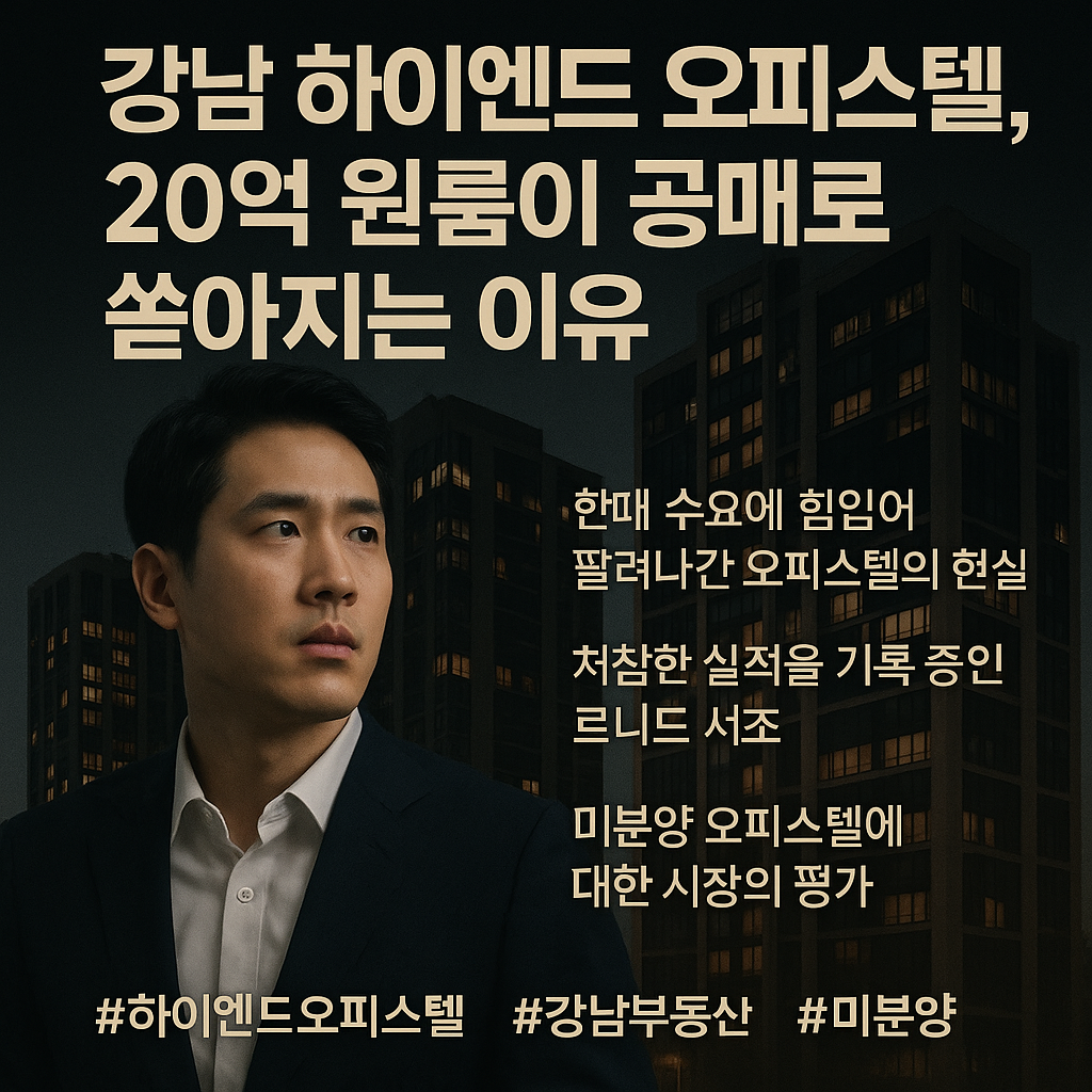 한때 꿈을 팔았던 강남 하이엔드 오피스텔은 이제 고급스러운 콘크리트 무덤이 되었습니다. 화려한 포장지가 벗겨진 지금, 남은 것은 감당하기 어려운 공실과 손실뿐입니다. 부동산 투자를 고려하신다면 화려한 마케팅보다는 실질적인 수익성과 수요를 꼼꼼히 따져보시기 바랍니다.