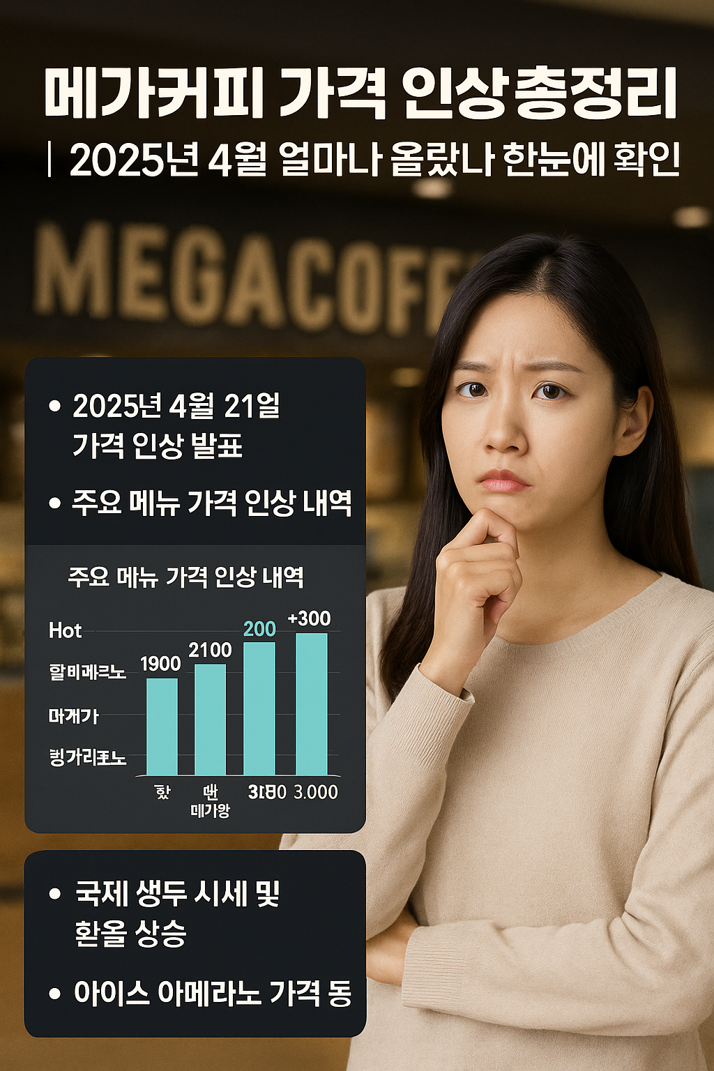 ※ 메가커피 일부 메뉴 가격 인상 전후 비교 (2025년 4월 기준)
