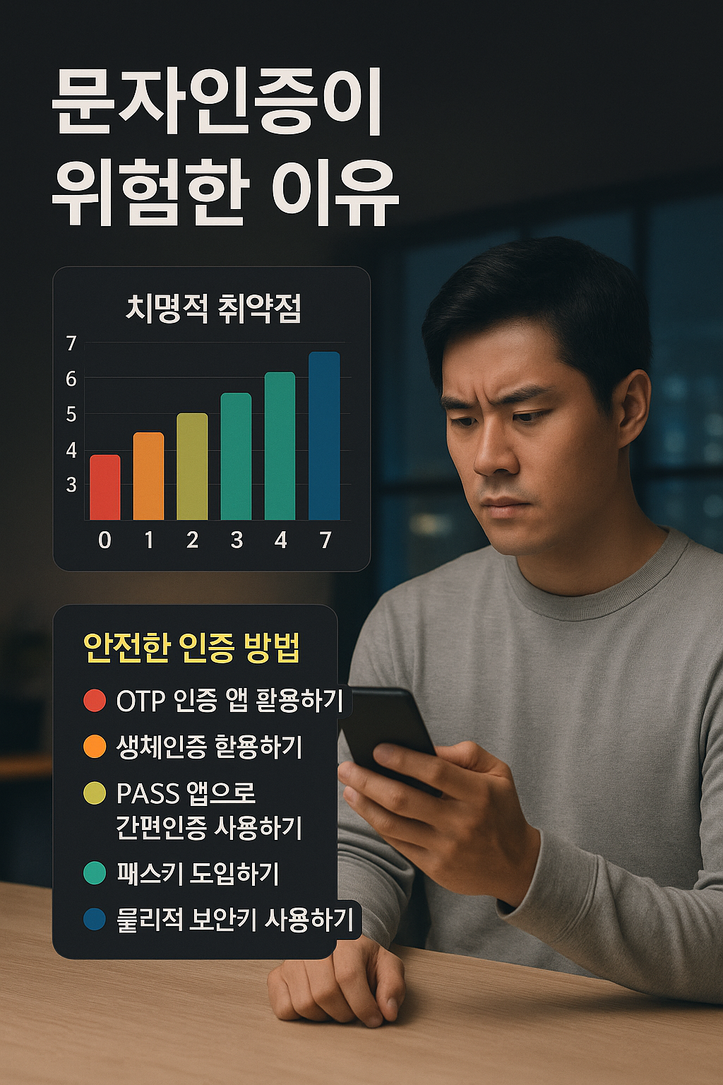 본인의 개인정보와 자산을 보호하기 위해서는 가능한 한 OTP 앱, 생체인증, 패스키 등 더 안전한 인증 방식을 활용하시길 권장합니다. 정부와 기업들도 보안 가이드라인을 강화하고, 사용자들에게 더 안전한 인증 방식을 제공하는 노력이 필요한 시점입니다.