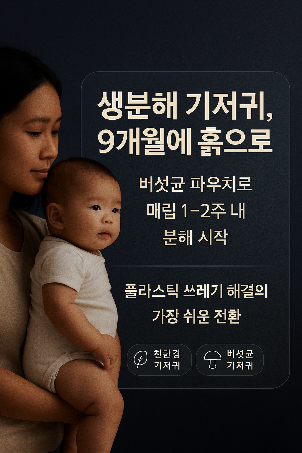 생분해 기저귀는 버섯균이 여는 9개월의 해법으로, 가정이 플라스틱 쓰레기 문제에 실질적으로 개입할 수 있는 가장 손쉬운 시작점입니다.