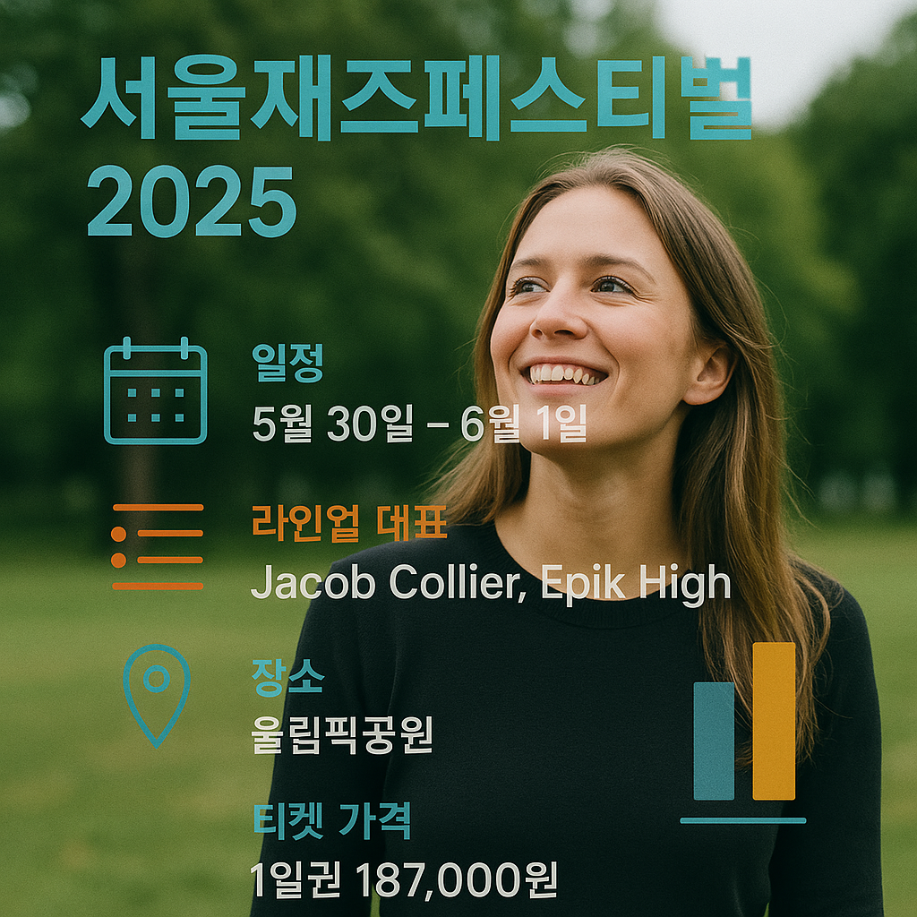 봄바람과 함께 찾아오는 서울재즈페스티벌 2025(서재페 2025)가 어느새 코앞으로 다가왔습니다. 음악 팬이라면 서울재즈페스티벌 2025 일정라인업이 가장 궁금하실 텐데요. 이번 포스트에서는 일정과 장소, 화려한 출연 아티스트 라인업, 티켓 예매 정보와 가격, 그리고 관람 꿀팁부터 전년도 후기, 현장 즐길 거리, FAQ까지 7가지 핵심 정보를 총정리해드립니다. 올해 서재페는 어떤 매력이 기다리고 있을지 함께 살펴볼까요?