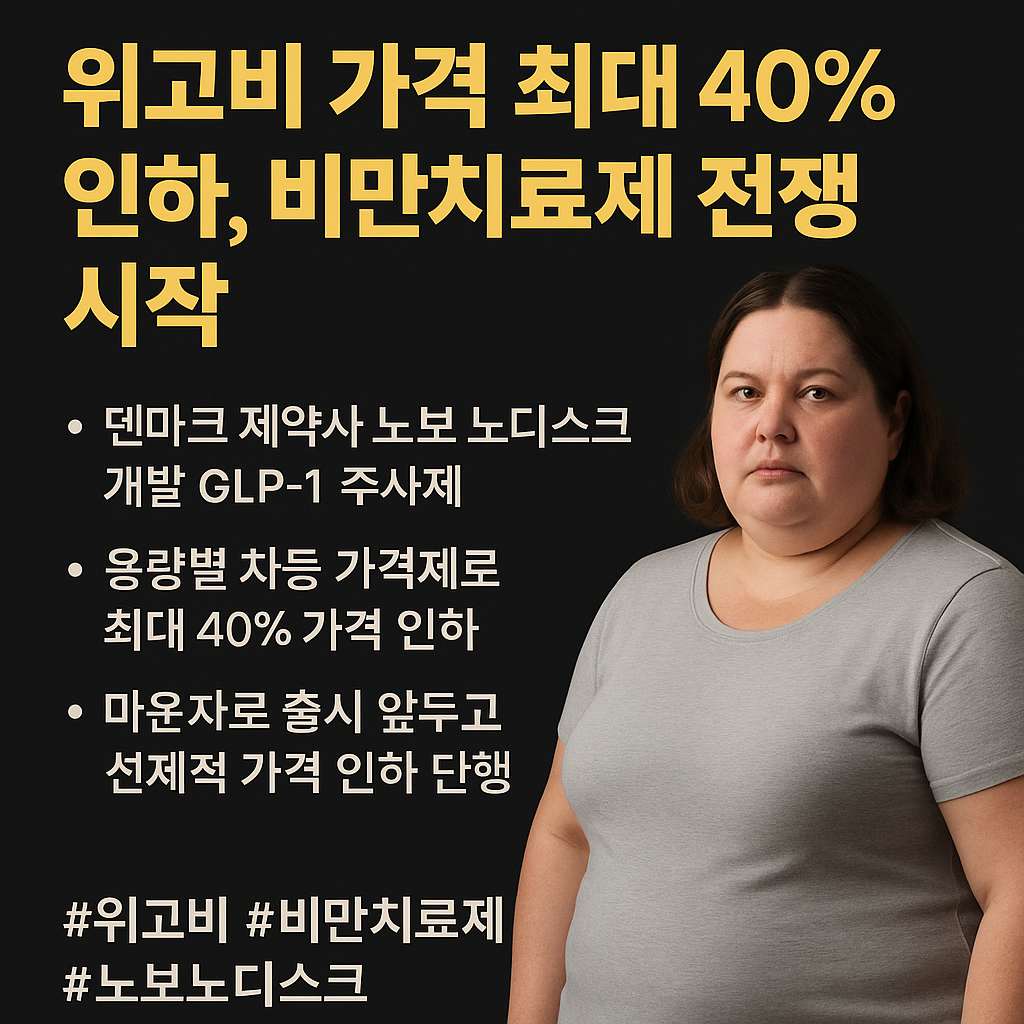 위고비 가격이 최대 40%까지 인하됩니다. 마운자로 출시를 앞두고 노보 노디스크가 가격 경쟁에 나섰는데요. 비만치료제 시장의 치열한 경쟁과 앞으로의 전망을 자세히 알아보겠습니다.