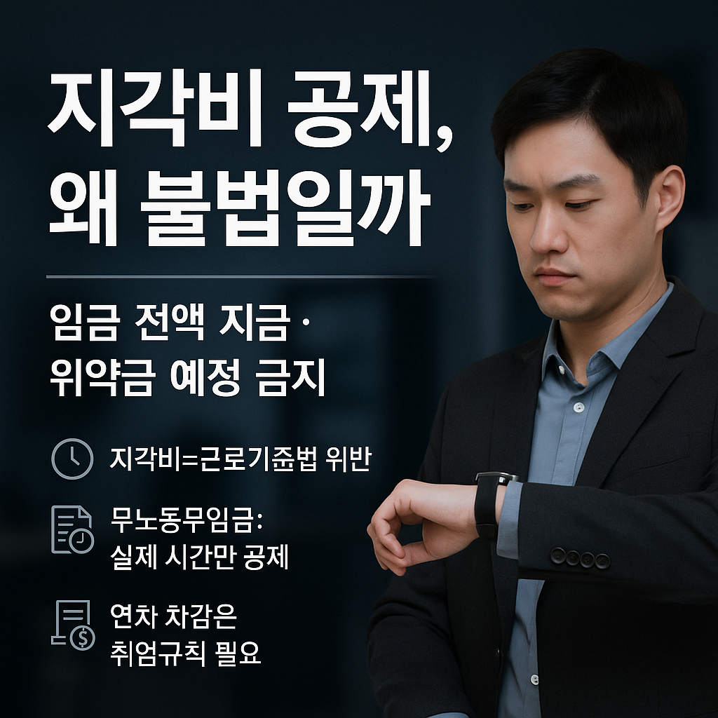 회사 생활을 하다 보면 예상치 못한 지각을 할 때가 있죠. 잠시 늦었을 뿐인데, 회사에서 지각비를 걷거나 급여에서 공제한다고 하면 당황스러울 수 있습니다. 과연 회사는 지각한 근로자에게 마음대로 지각비를 부과하거나 임금을 깎을 수 있을까요? 결론부터 말씀드리면, 방식에 따라 위법일 수 있습니다. 오늘은 많은 직장인이 궁금해하는 지각비 공제와 관련된 법적 기준을 명확하게 알려드릴게요.