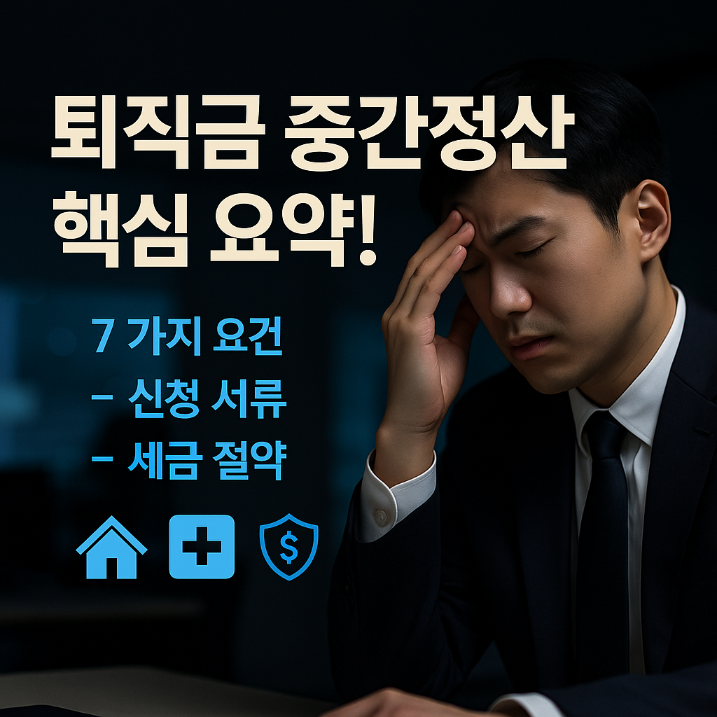 급하게 목돈이 필요하신가요? 법에서 정한 사유에 해당하면 퇴직금 중간정산이 가능합니다. 무주택자 주택구입, 전세자금, 가족 의료비 등 7가지 요건부터 신청 서류, 세금 절약 꿀팁까지 완벽하게 알려드립니다.