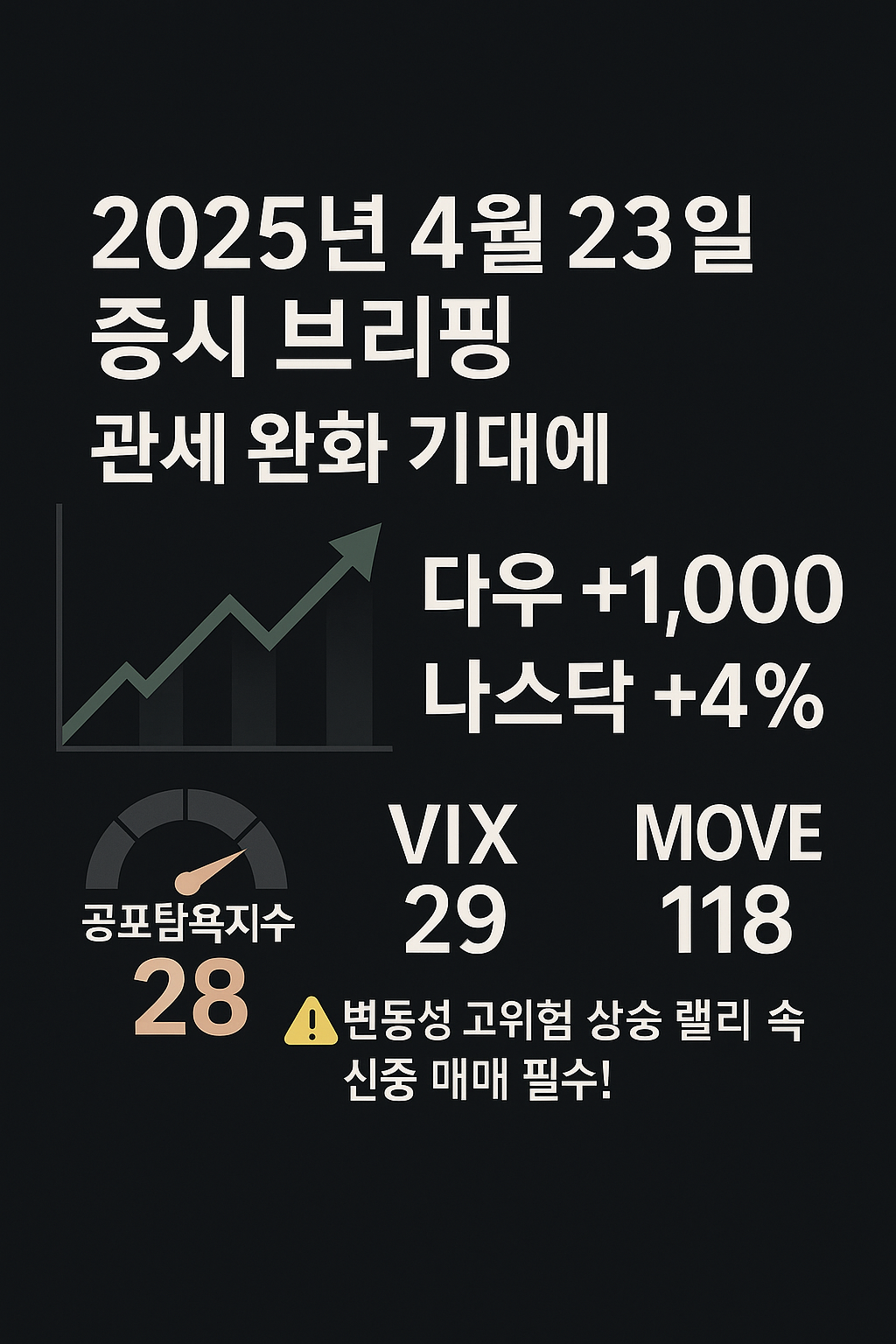 | 2025년 4월 24일 증시 전망: 트럼프 관세 완화 발언에 기술주 랠리, 공포 심리 완화 (5) | 2025.04.24 |