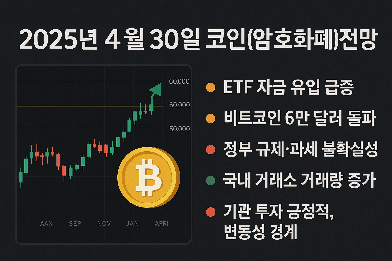 | 2025년 4월 29일 코인(암호화폐) 시장 전망: ETF 70건 심사·기관 매수 확대…비트코인 95K 재도전 (3) | 2025.04.29 |