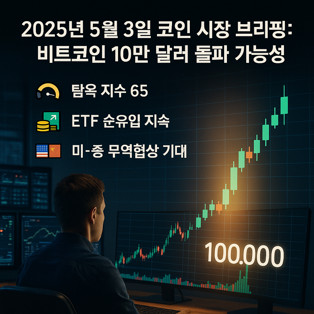 2025년 5월 3일 코인(암호화폐) 브리핑: BTC 10만 달러 도전 임박…관전 포인트는?
