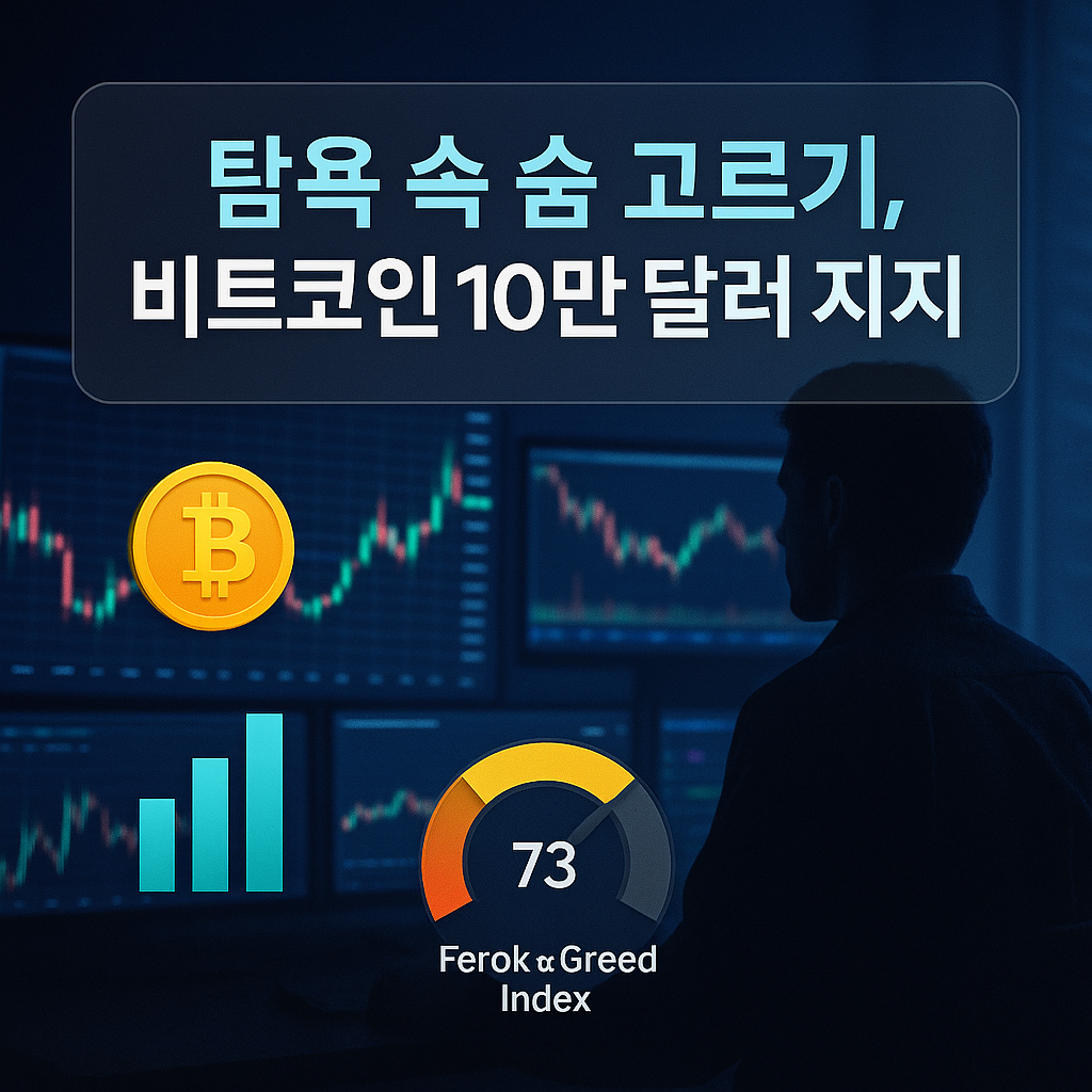 2025년 7월 8일, 가상자산 시장은 표면적인 고요함과 내재된 긴장감이 공존하는 미묘한 국면에 접어들었습니다. 비트코인(BTC)은 10만 7천 달러 선에서 소폭의 등락을 보이며 숨을 고르고 있고, 이더리움(ETH) 역시 2,500달러 선에서 비슷한 흐름을 보입니다. 하지만 투자 심리를 나타내는 '공포-탐욕 지수(Crypto Fear & Greed Index)'는 73이라는 '탐욕(Greed)' 단계를 가리키며, 현재 가격 움직임과 시장 참여자들의 심리 간의 괴리를 명확히 드러내고 있습니다.