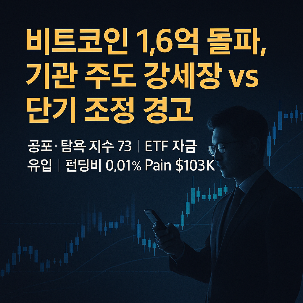 2025년 7월 19일 오전 9시, 암호화폐 시장은 뜨거운 열기 속에 새로운 국면을 맞이하고 있습니다. 비트코인은 국내 원화 기준 1억 6천만 원을 돌파하며 투자자들의 환호를 이끌어냈지만, 동시에 시장 전반에 '탐욕'의 그림자가 짙게 드리워져 있습니다. 현재 시장은 단순한 가격 상승을 넘어, 기관 투자자의 대규모 유입, 새로운 기술 내러티브의 부상, 그리고 복잡한 파생상품 시장의 동역학이 얽혀 전례 없는 복잡성을 보이고 있습니다.
