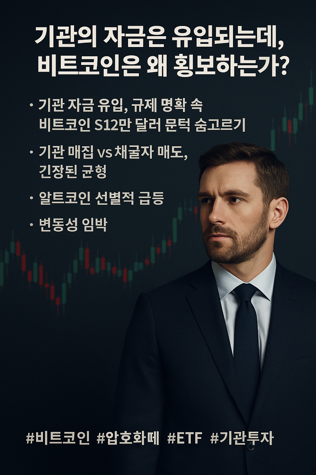 이러한 상반된 온체인 흐름을 종합하면, 비트코인의 현재 횡보 움직임이 무작위적인 가격 변동이 아님을 알 수 있습니다. 이는 두 강력한 세력, 즉 막대한 기관의 수요와 지속적인 채굴자의 공급이 맞서는 '흐름의 전쟁'이 낳은 직접적인 결과입니다. 기관의 매수세는 강력한 지지선을 형성하며 가격 하락을 막고 있고, 동시에 채굴자들의 매도세는 가격 상승을 억제하는 저항선 역할을 하고 있습니다.