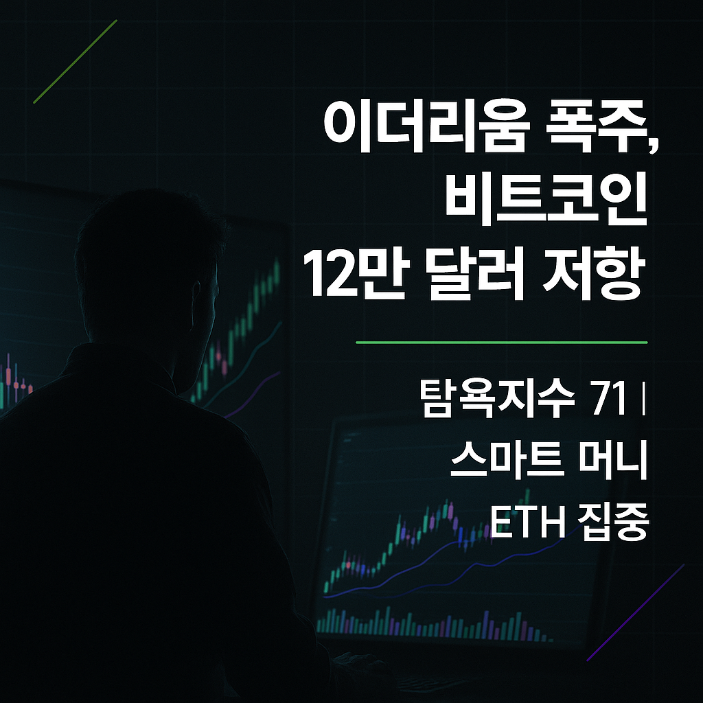 현재 암호화폐 시장은 '비트코인의 안정적 횡보 속 이더리움이 주도하는 선별적 강세장'으로 요약할 수 있습니다.