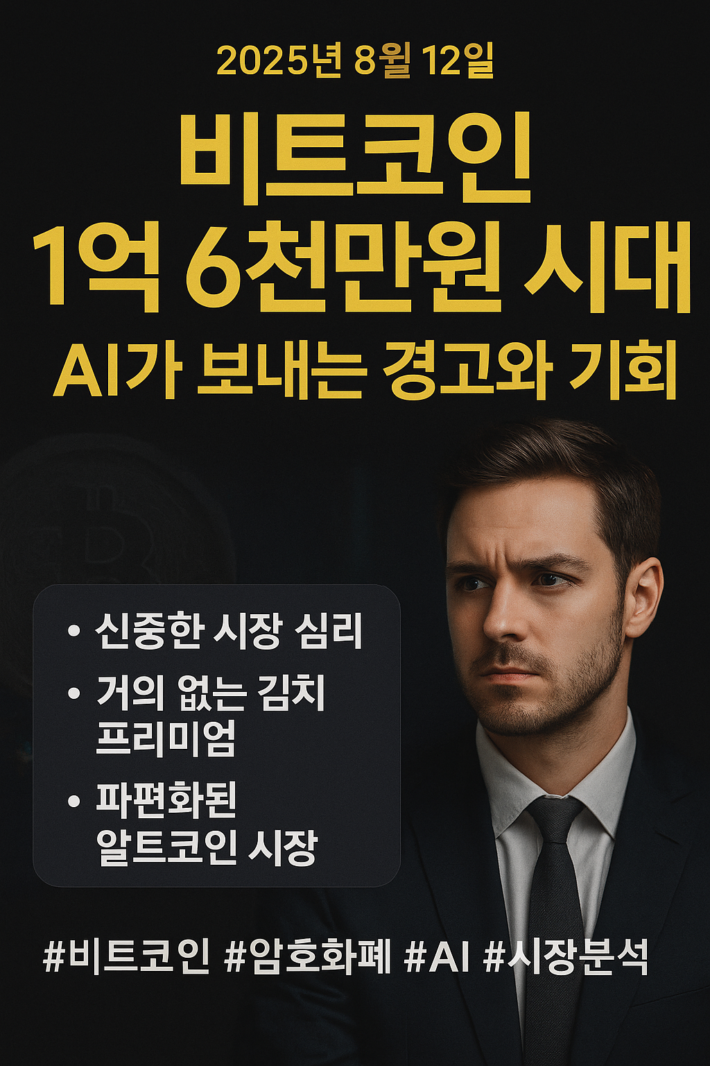 지금까지의 분석을 종합하면, 현재 암호화폐 시장은 강력한 긴장감 속에서 중요한 기로에 서 있습니다. '비트코인 1억 6천만원'이라는 강세 신호와 '신중한 시장 심리 및 데이터'라는 약세/중립 신호가 팽팽하게 맞서고 있습니다.