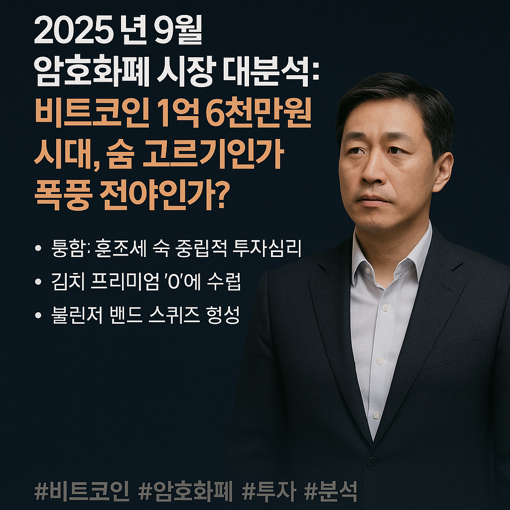 2025년 9월 14일 새벽, 암호화폐 시장은 거대한 변곡점 위에 서 있습니다. 비트코인이 1억 6천만 원이라는 상징적인 가격대에서 횡보하는 가운데, 시장 참여자들의 시선은 다음 방향성에 대한 단서를 찾기 위해 그 어느 때보다 날카롭게 움직이고 있습니다. 현재의 소강상태는 더 큰 도약을 위한 건전한 다지기일까요, 아니면 힘이 소진된 후의 폭풍 전야일까요? 본 컬럼에서는 데이터에 기반한 다각적 분석을 통해 시장의 심층부를 들여다보고, 향후 전개될 시나리오를 심도 있게 전망하고자 합니다.
