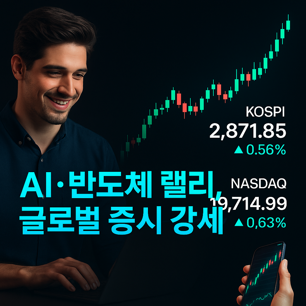 - 한국시장: 코스피 2,871.85(+0.56%), 코스닥 771.20(+0.91%)로 동반 상승 마감했다. 외국인과 기관의 순매수세가 이어지며 5거래일 연속 오름세를 이어갔다.