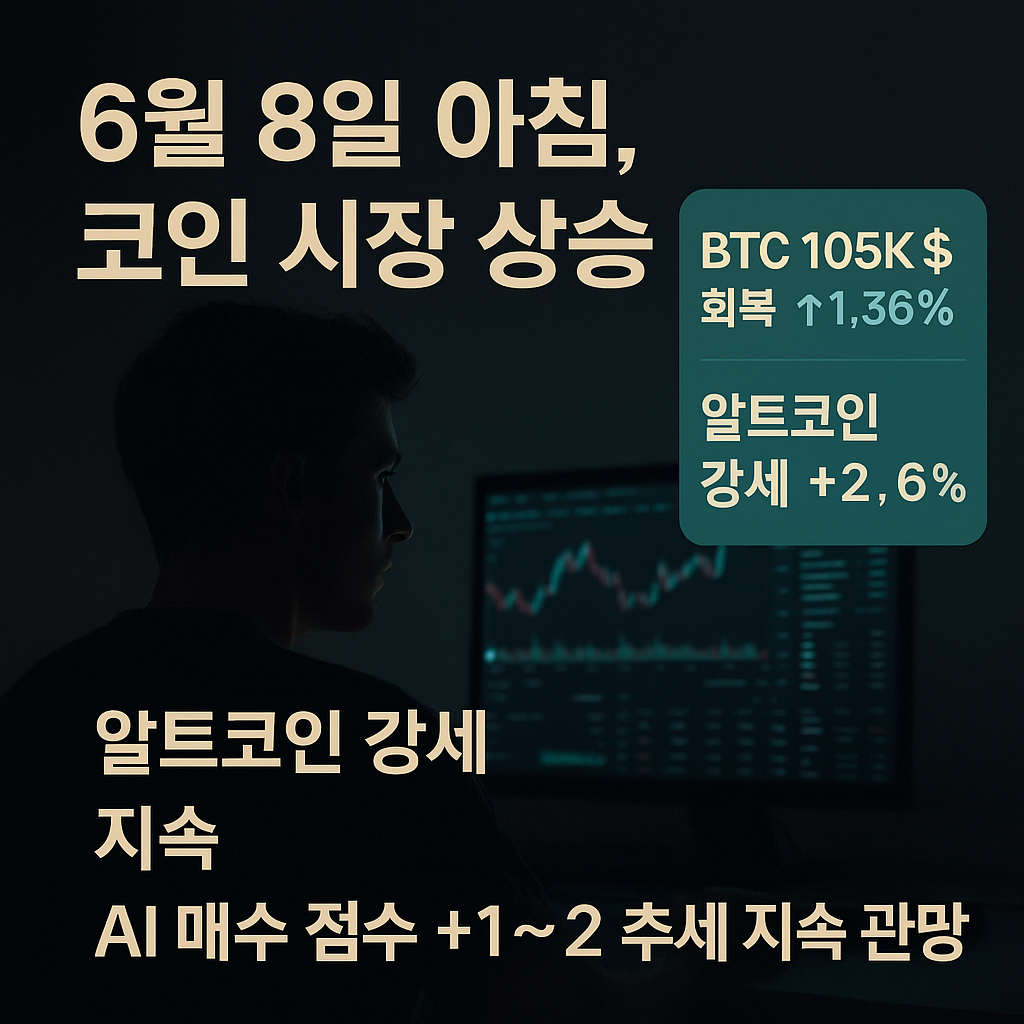 요약 및 유의점: 6월 8일 암호화폐 시장은 주요 코인의 동반 강세로 출발했지만, 여전히 변동성 리스크도 상존한다. AI 분석은 대체로 긍정적 시그널을 포착했고, 매수추천 점수 역시 중도 이상의 호재를 반영하고 있다. 그러나 머스크-트럼프 갈등, 해킹 사고 같은 이벤트는 언제든 악재로 작용할 수 있다. 따라서 현재의 상승 모멘텀을 활용하되, 단기 급등 시 차익 실현과 포트폴리오 분할 전략을 병행하는 것이 바람직하다. 암호화폐 투자자는 시장 호재와 리스크를 균형 있게 고려하며 신중하게 대응할 필요가 있다.